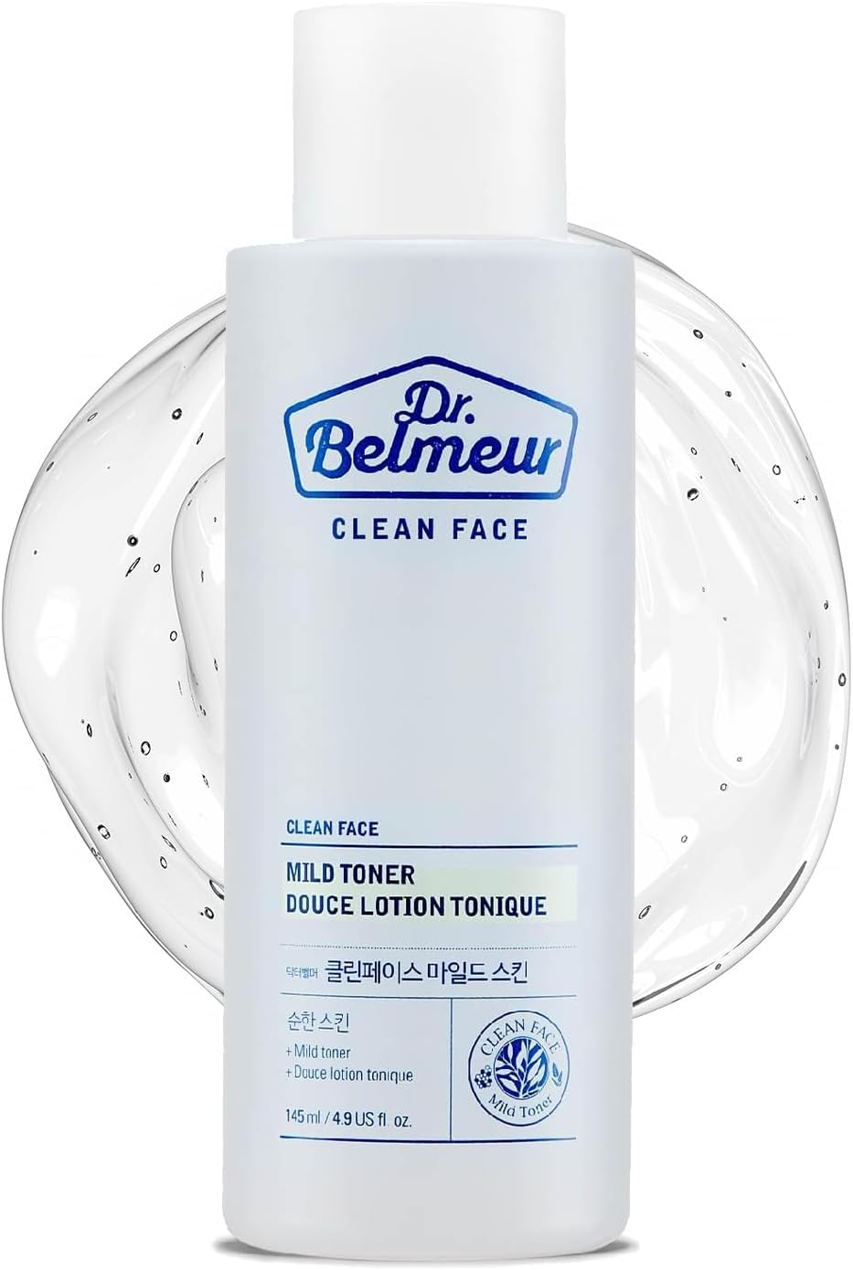 DR. BELMEUR CLEAN FACE MILD TONER (145ml/4.9fl oz) offers calming care for sensitive skin, soothing irritations, and reducing redness with ingredients such as panthenol, apple mint and sage extracts, and phytosphingosine.