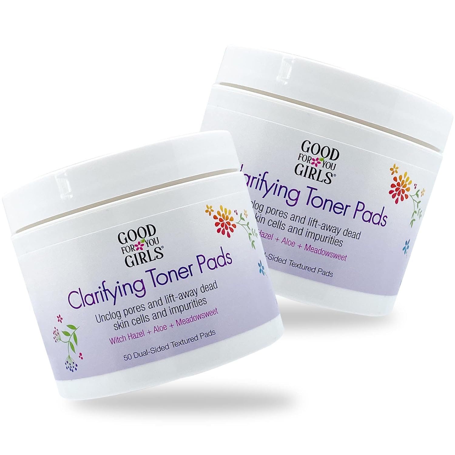 Good For You Girls Purifying Toner Pads Unclog Pores & Controls Oil, natural ingredients like Witch Hazel, Aloe, Meadowsweet balance pH, Hyaluronic Acid plumps and hydrates (2 PACKS - 50 pads ea)