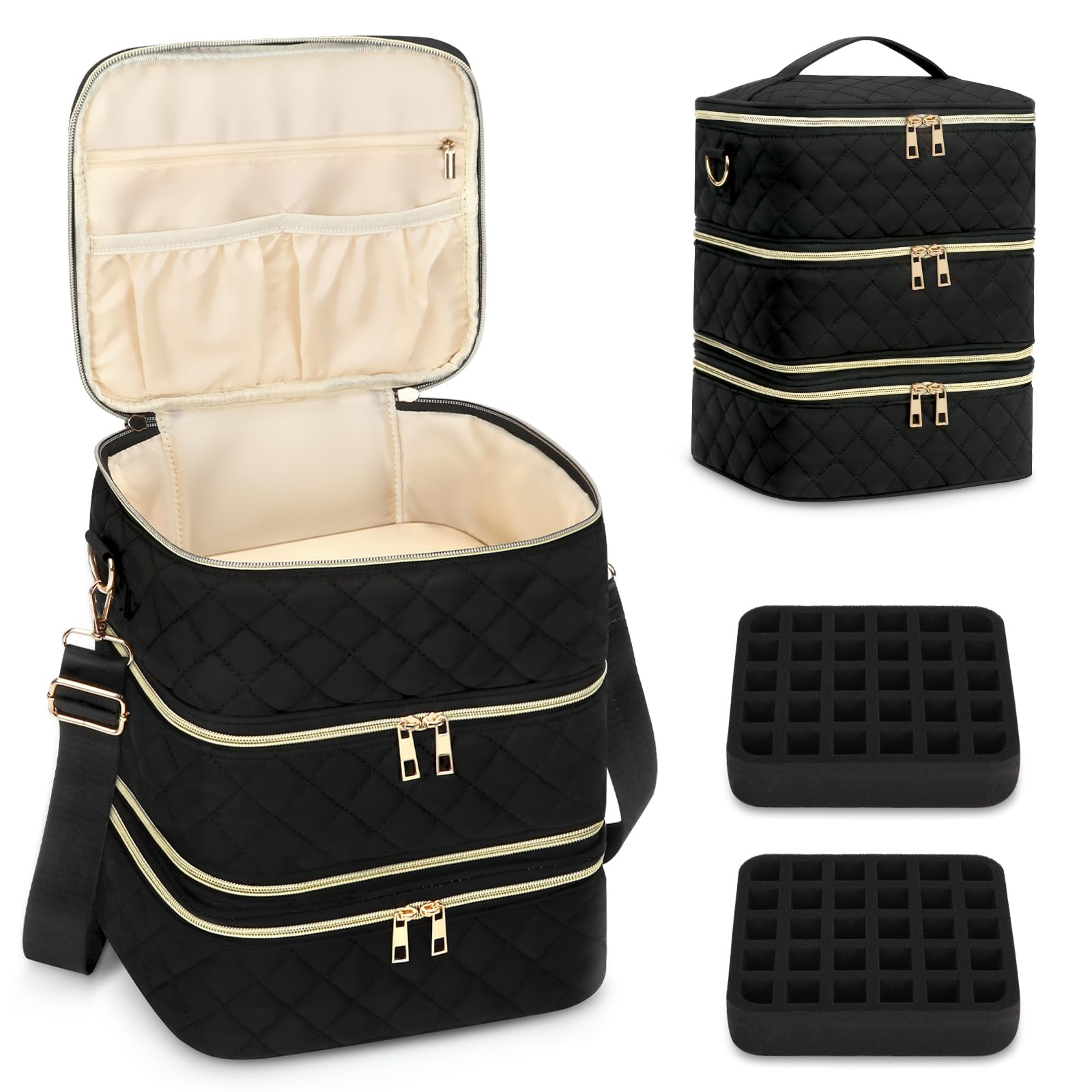 KZAOPZ Nail Polish Organizer Case, 3 Layers Nail Polish Case with Dividers,Detachable Nail Polish Organizer Bag Holds 60 Nail Polish Bottles and a Nail Lamp,Nail Bag for Nail Tech Supplies