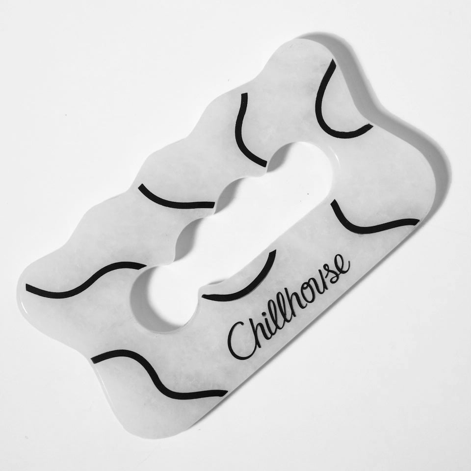1) Prep the skin with Chillhouse body oil to ensure skin is ready for your gua sha.