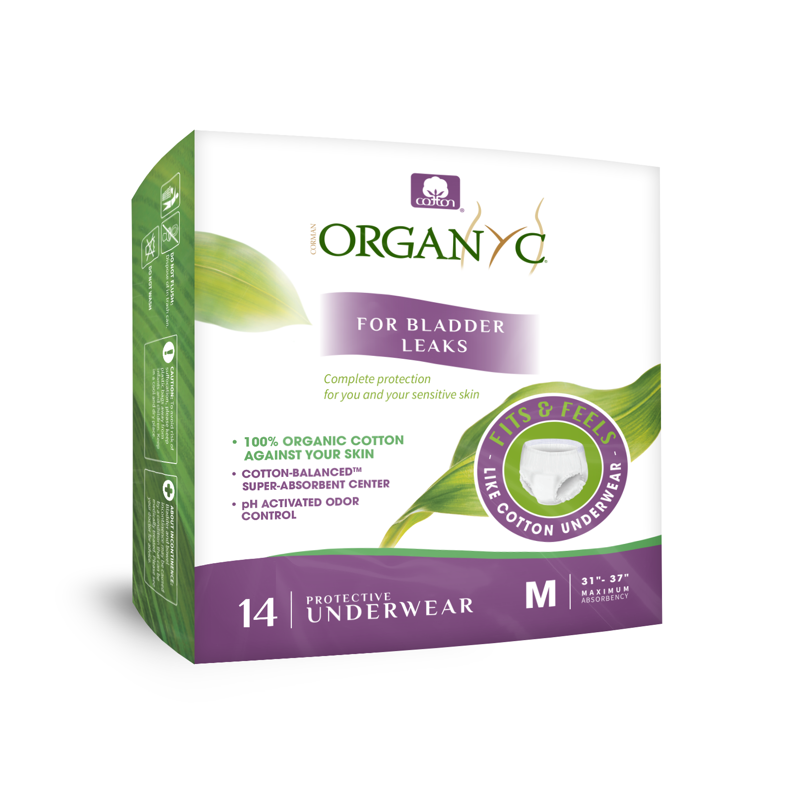 This underwear is thin and discreet, has a 100% organic cotton top sheet, and gentle waist and leg gathers so it fits and feels just like regular cotton underwear. The cotton-balanced absorbent core absorbs instantly, prevents wetness build up and sagging. Plus, there is an additional absorbent layer for added assurance and extra protection against leaks. And, because it’s made with cotton, it naturally protects against odor, ensuring the protection you need and the discretion you want.