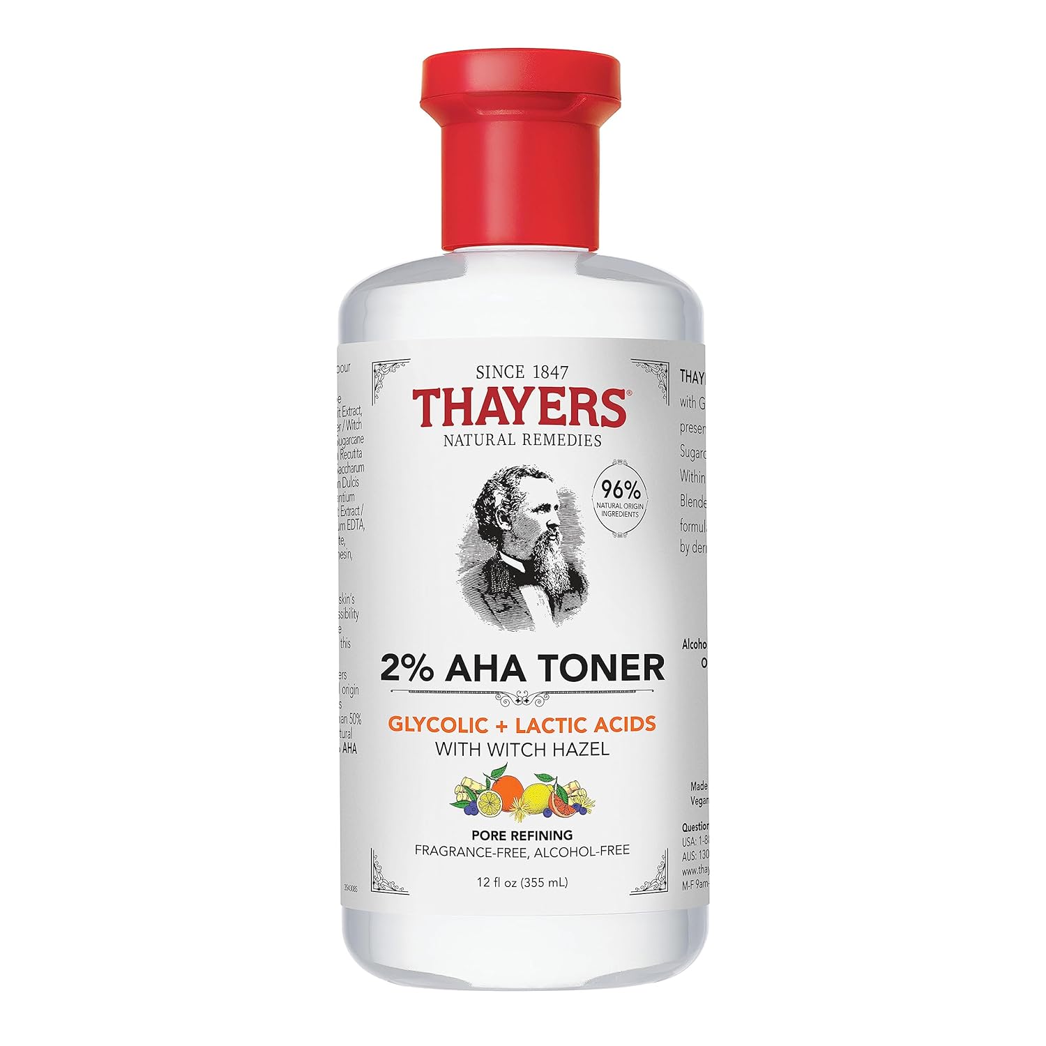 Thayers 2% AHA Exfoliating Toner with Glycolic Acid, Lactic Acid and Witch Hazel, Smoothing and Pore Refining Skin Care for All Skin Types, 12 Fl Oz